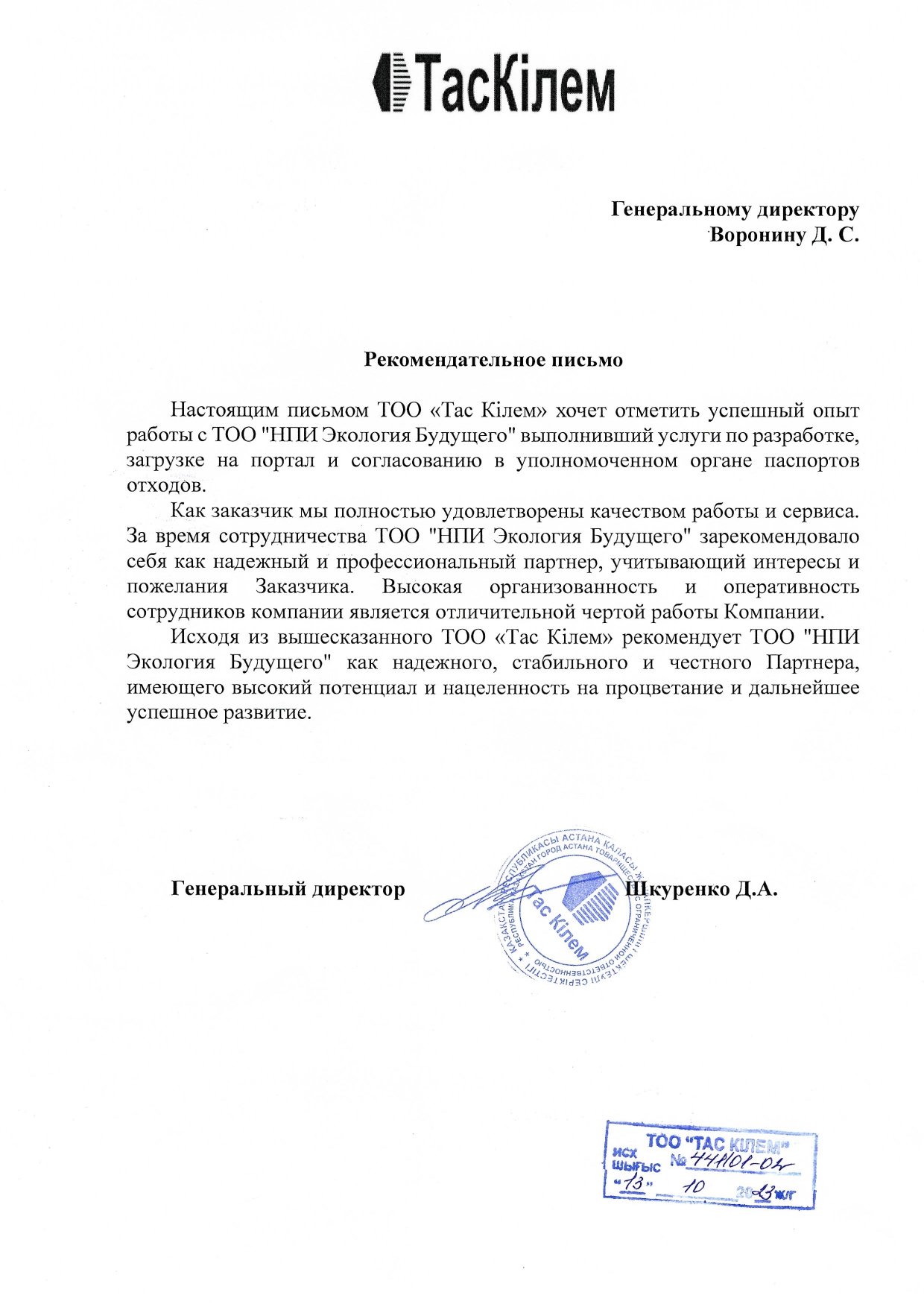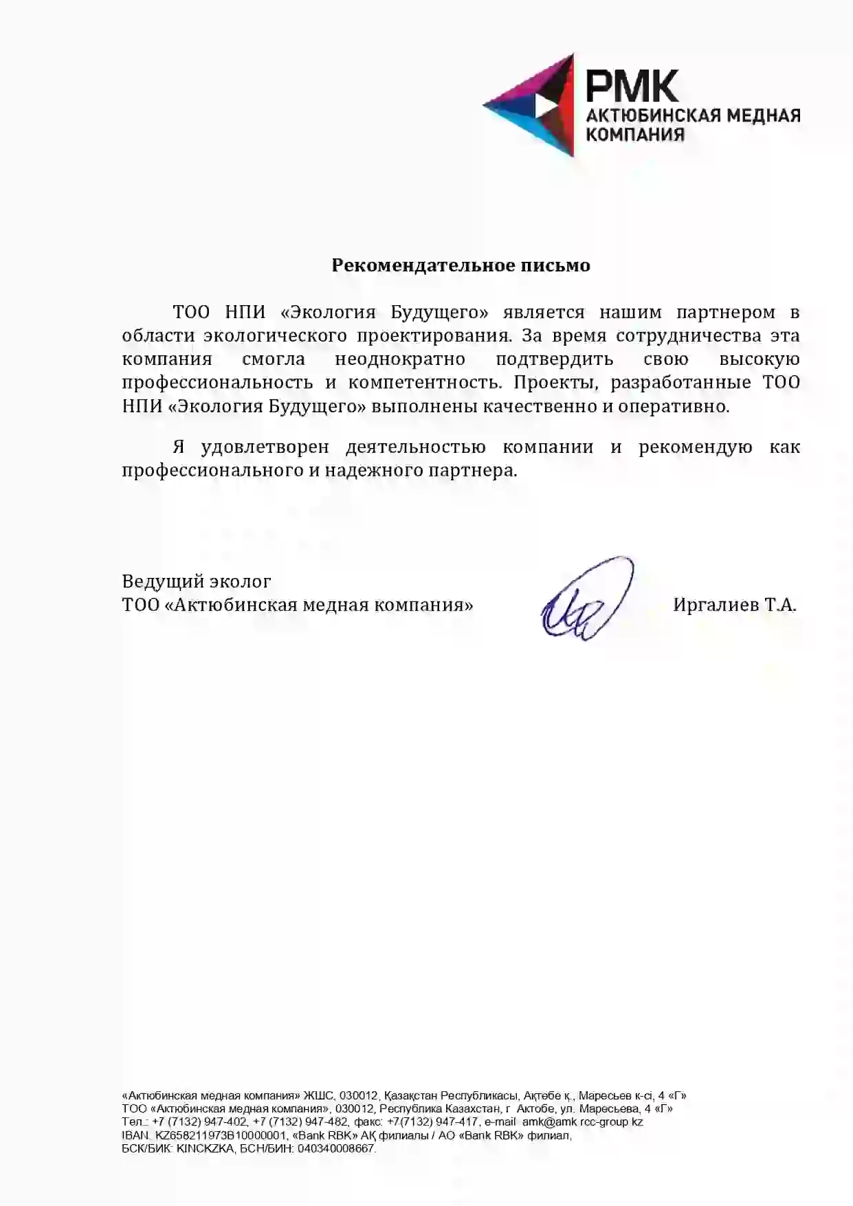 ТОО "НПИ Экология Будущего" успешно существует уже более пяти лет. Наши специалисты знают юридические тонкости экологического законодательства. Мы полностью посвящены своему делу, всегда работаем на результат и нацелены на то, чтобы вы не только помогали сохранить экологию, но и не имели проблем с законом.