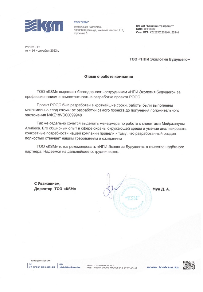 Для уточнения всех интересующих вас вопросов и конечной цены на услугу Постановка на учет объекта НВОС в городе Астана вы можете отправить заявку нам на почту info@npieco.kz, включающую технические условия или техническое задание, если таковых нет, то наше конструкторское бюро разработает данную документацию под ваш запрос, при необходимости на место выезжает наш специалист.